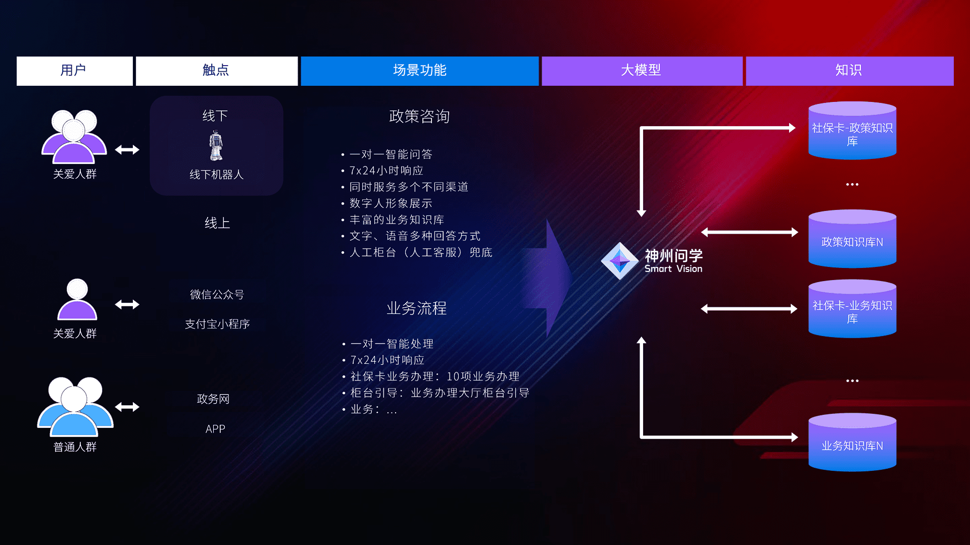 在服务大厅部署客服机器人,,在线上应用和小程序配置客服数字人,,724小时为群众解答常规问题,,,,客服机器人无法处理的,,,,转现场人工处理。。